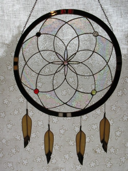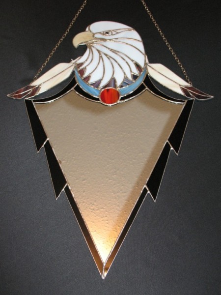 After years of Sandblasting my designs on glass, it was an easy transition to Stained Glass. Creating Custom hand drawn patterns along with the limitless beautiful glass available. Much of my work focuses on creating custom Native Indian (First Nations) Designs, but I also enjoy creating animal pieces like eagles, buffalos, wolves and dragons to name a few.